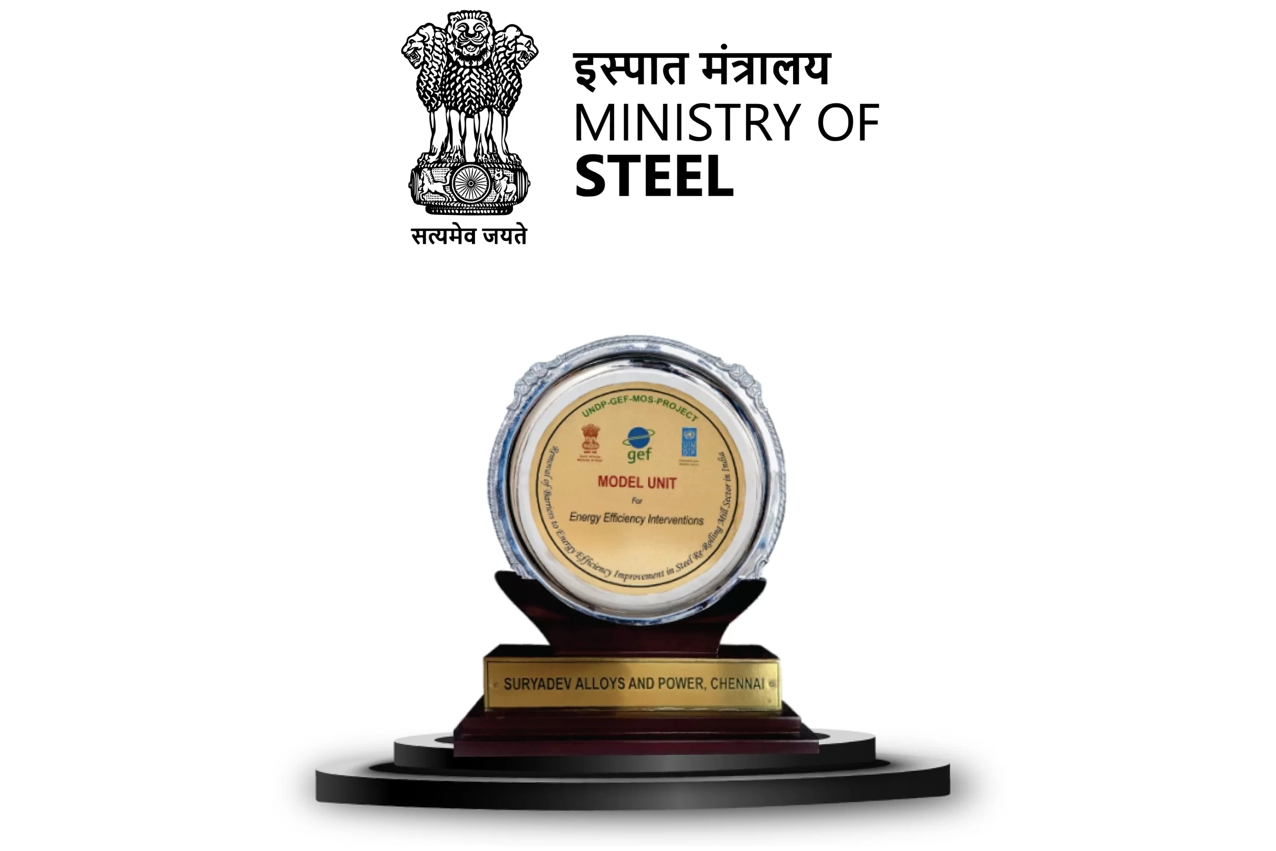 Suryadev’s New Gummidipoondi Steel Plant recognized by the Ministry of Steel as a ‘Model Unit’ for efficient and high-quality production of TMT rebars.