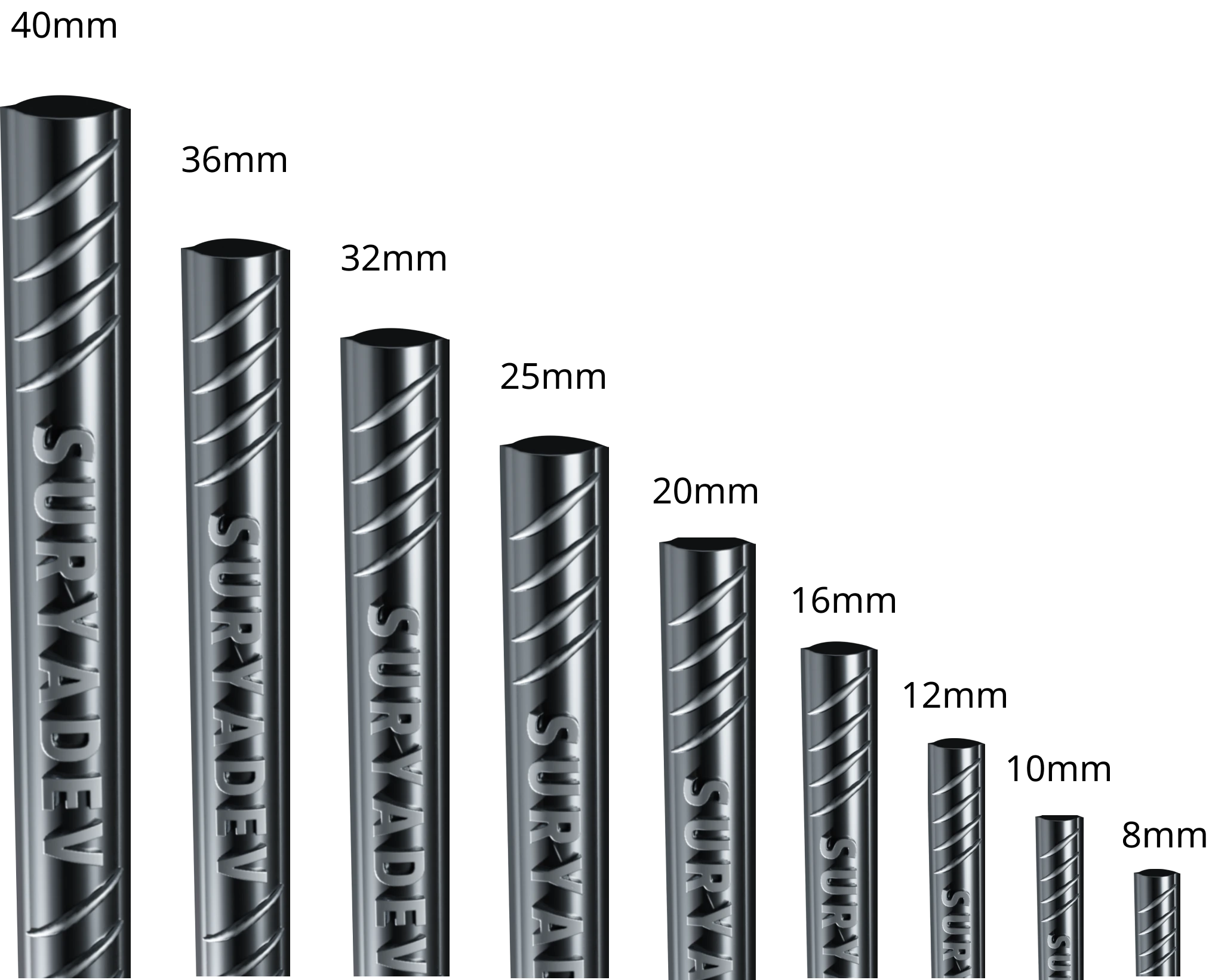 Our TMT Rebars are available in various Sizes